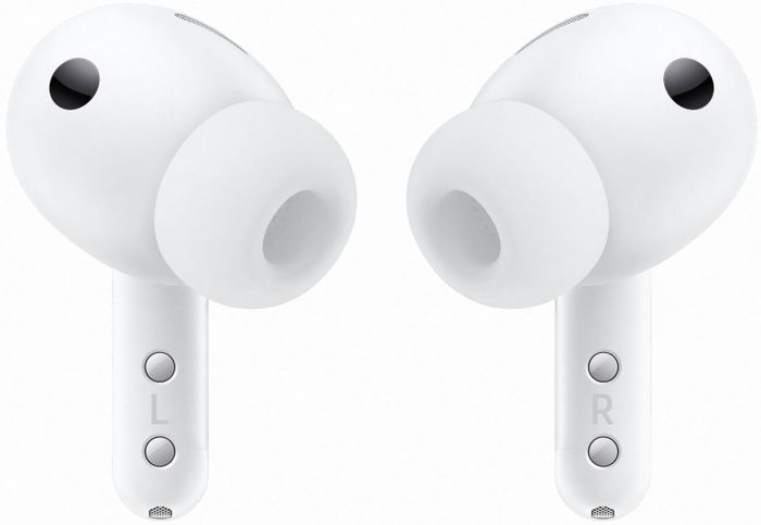 Металлические элементы, тонкие скошенные грани и сенсорная панель с углублением делают Buds4 Pro визуально строгими и функциональными. Управление жестами становится точнее, а сами наушники комфортны даже при длительном ношении.