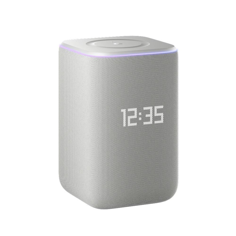 На фронтальной стороне умной колонки находится пиксельный LED-дисплей, который показывает время, погоду и эмоциональные реакции Алисы.